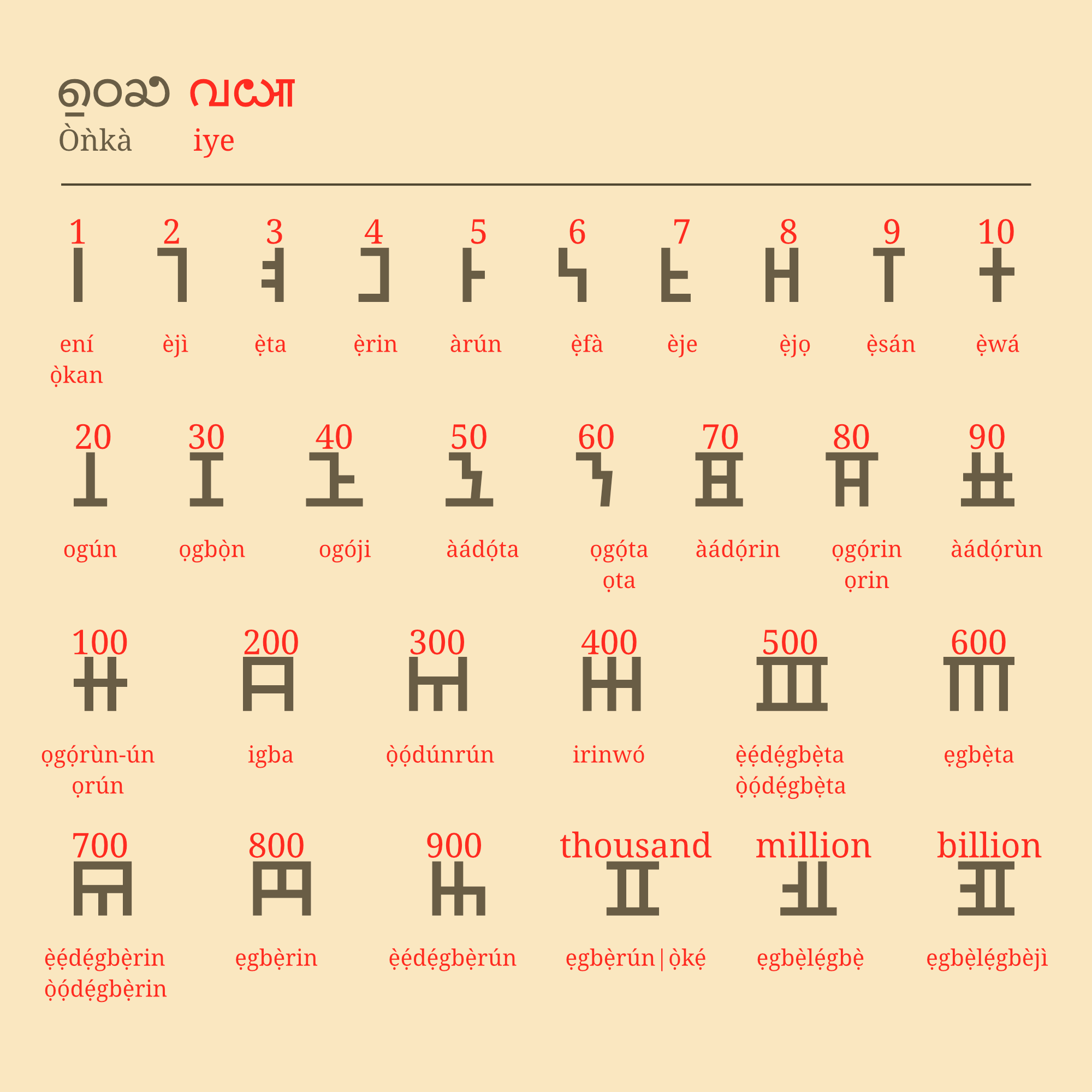 The Yorùbá numeral system can be complex for those who are only familiar with the Indic numeral system. Many reformers have proposed newer ways of expressing numbers; however, these have largely failed to gain traction in everyday speech and writing (with the exception of terms for thousands through billions developed by science in Yoruba, which has been included). This numeral writing system is simply a method of making numbers easier to learn and write without changing or removing any existing elements. Instead, it provides learners with mnemonic cues to support their understanding. In short, the written form serves as a shorthand for visualizing and codifying Yorùbá numerals, to be read as they are spoken. There are two forms of writing the numbers just as there are two ways of saying numbers in speech, cardinal (Òǹkà iye) and ordinal (òǹkà ipò).